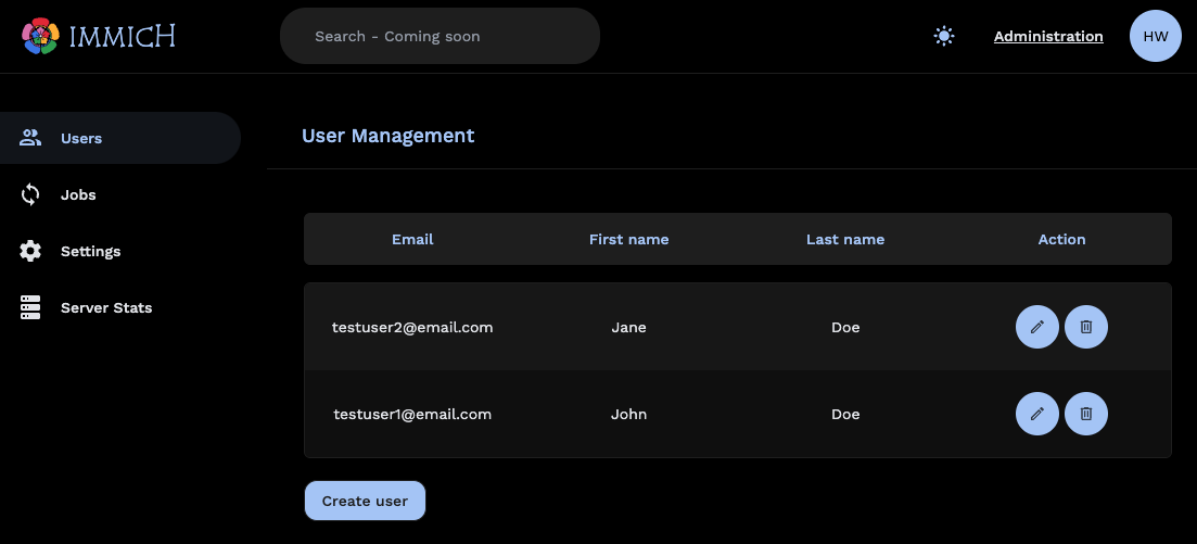 If you need to remove a user from Immich, head to "Administration", where users can be scheduled for deletion. The user account will immediately become disabled and their library and all associated data will be removed after 7 days by default.
